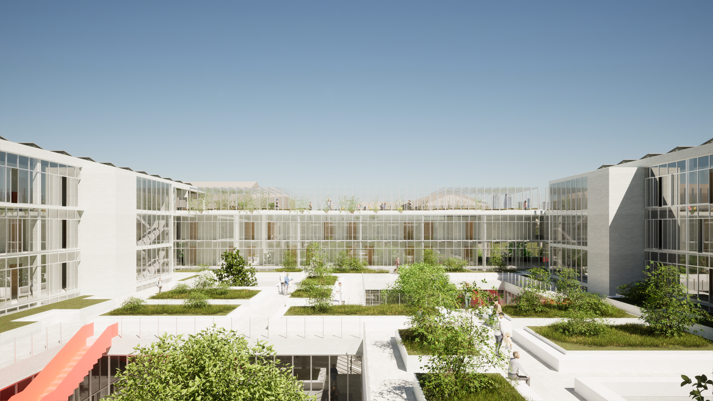 Središnji prostor prizemlja zamišljen je kao "centar naselja", fleksibilan i osvijetljen atrijima koji povezuju prizemlje s gornjim etažama. Na višim katovima nalaze se stacionari i stambeni prostori s naglaskom na kvalitetne zone socijalizacije – zajednički dnevni boravci, terase, balkoni i krovni perivoj. Sobe imaju niše i balkone uklopljene u zelenilo, stvarajući intimne prostore za druženje i boravak.